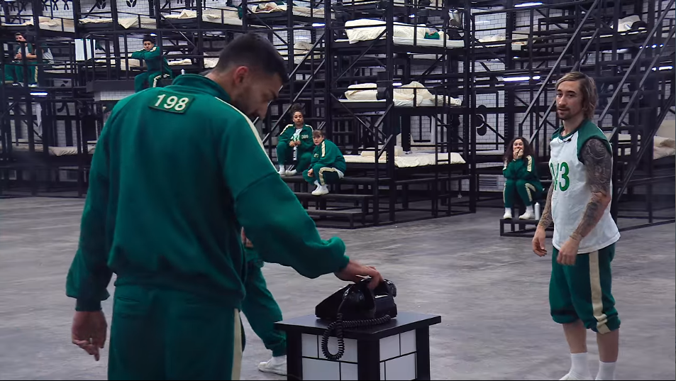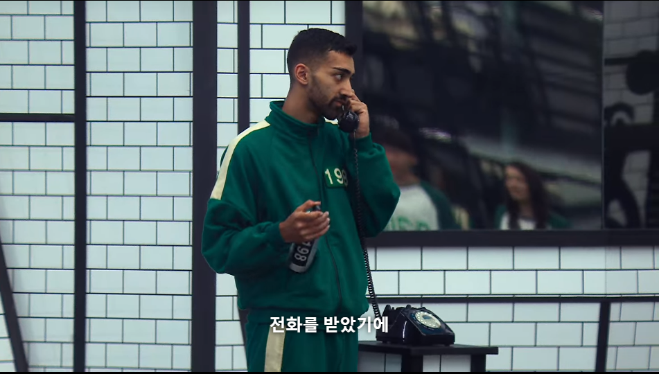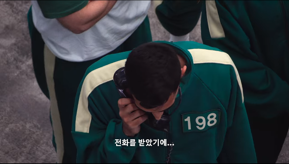 전화기 근처에 서있던 198번이 잽싸게 달려가서 전화를 받음