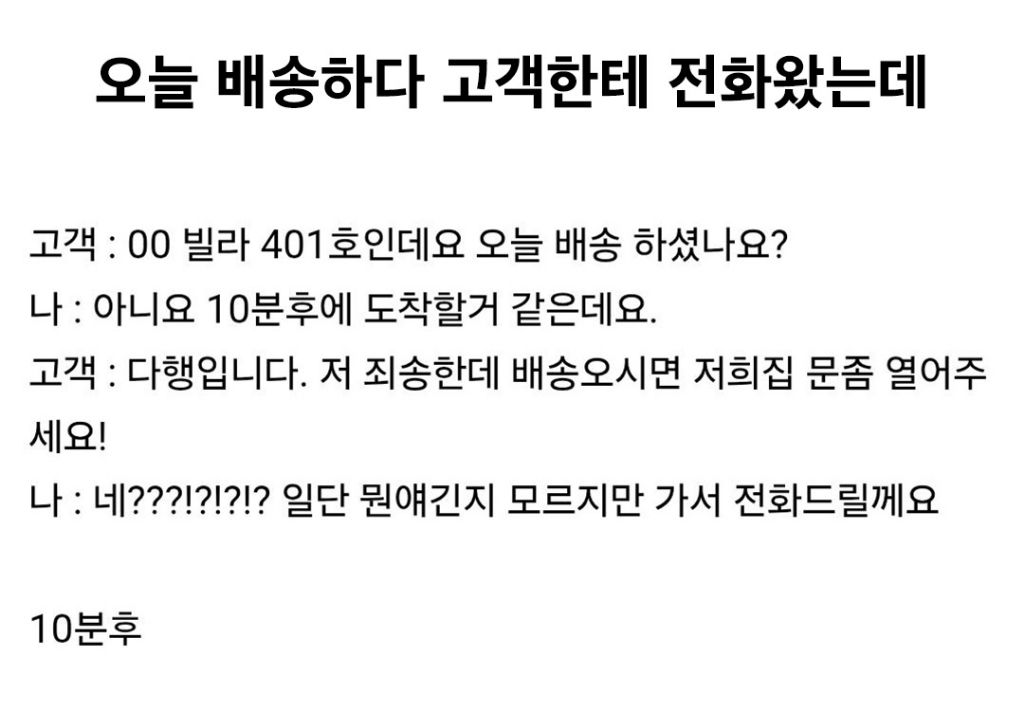 작성자진금룡 작성시간 25.11.02 생수병이나 쌀 무거운거 많이 시키지말라고 고생한다면서 택배기사 우쭈쭈해준 결과…