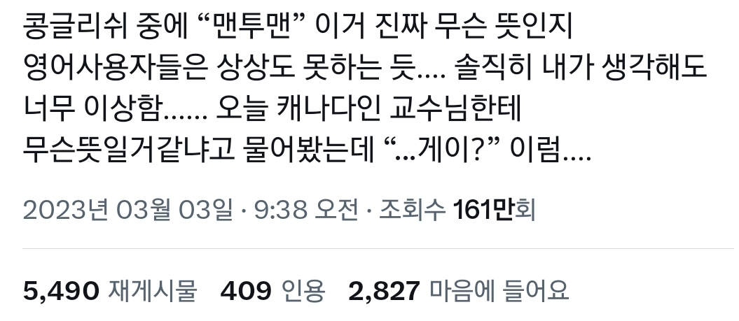 작성자잇티제그잡채 작성시간 25.11.02 난 농구 1:1로 마킹? 그거 용어라고 생각함ㅋㅋ큐ㅠㅠ영어에서도 그거 맨투맨이라 안하나...? 뭔가 그런 이름이었단 것 같은데