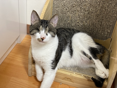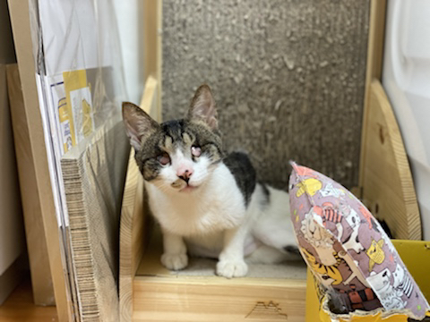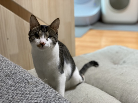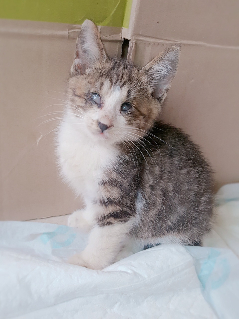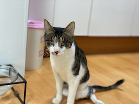 선천적인것으로 생각되는 시각 장애로 캣맘에게 구조되었고 내가 입양했어