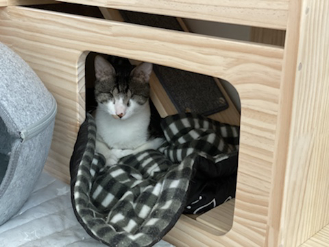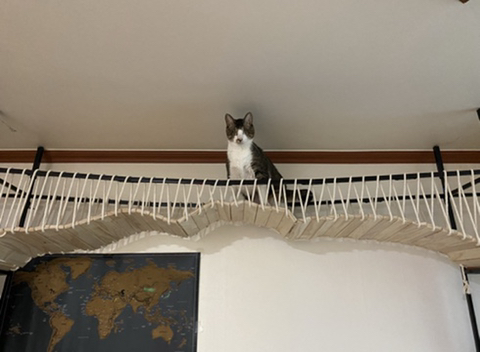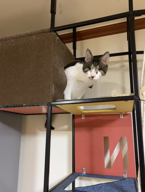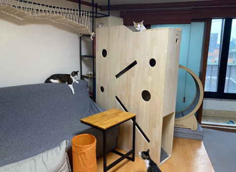 그래서 아래처럼 슬라이드 캣타워(?)를 주문 제작 했음... 기존 캣타워랑 높이를 맞추다보니 매우 거대해서 배달 받고 깜짝 놀람...
