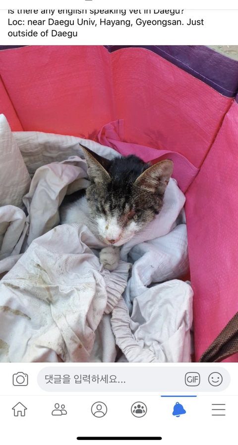 그래서 후지마비라는 얘기에, 혹시나 사고를 당한 상태라면 치료 골든 타임을 놓치면 안될거 같아서 돌봐주시던 분들과 소통 후 내가 아는 고양이 전문 병원으로 데리고 왔어