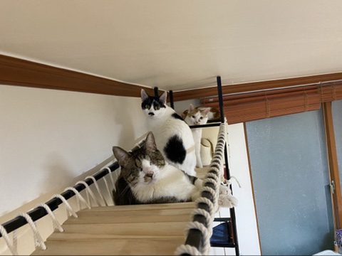 한번씩 캣타워에도 올라가보고