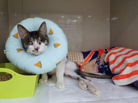 시각장애+후지마비+중성화 수술도 다 된 고양이가 왜 밖에 있어.....?