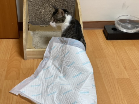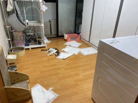**참고로 최근의 소변 흘림 원인은 아마도 다른 고양이와의 관계가 안좋아서 그로인한 스트레스 및 소변 지림이었던거 같아. 현재는 개선되서 바닥에 깔아둔 패드 갯수는 엄청 줄었어ㅋㅋㅋㅋㅋ