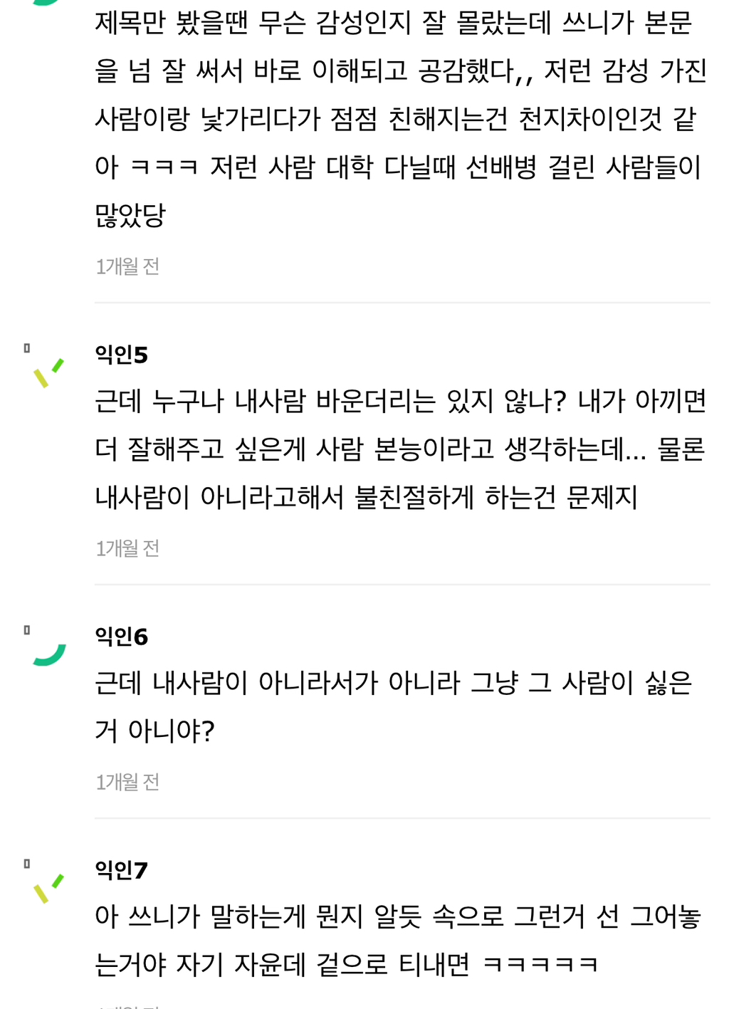 작성자ㄹr즈vㅔㄹl소ㄷr 작성시간 25.11.04 지금 회사 윗사람이 저래서 스트레스받음.. 유치하고 푼수같아서 어울리기 싫은데 후.. 사회생활 힘들다