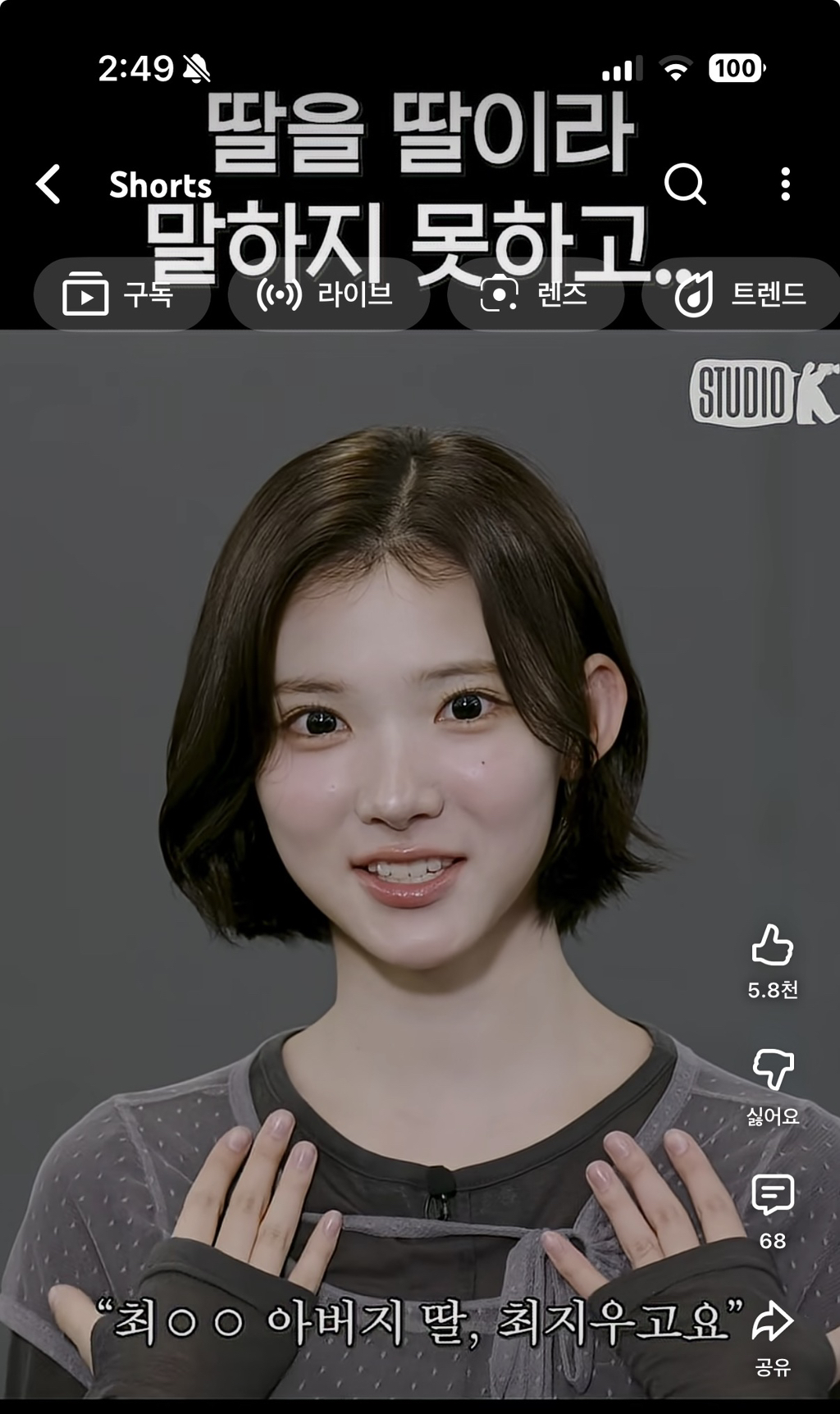 작성자살구맛빠삐코 작성시간 25.11.03 ㅅㅂ 카리나 내 딸이다가 더 웃겨 걍