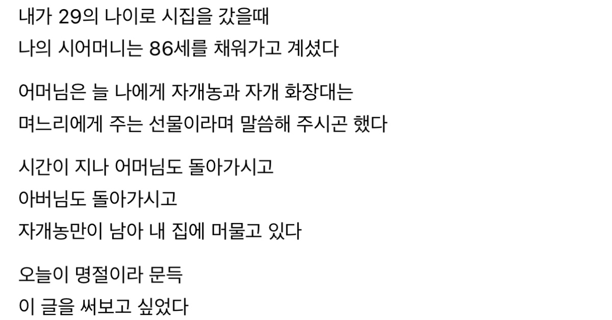 [스크랩] [흥미돋]시어머니가 물려주신 자개장.thread 작성자여단오여|작성시간25.11.02|조회수88,498 목록 댓글 68 글자크기 작게가 글자크기 크게가 출처: https://theqoo.net/square/3676917119이렇게 예쁜 자개장은 처음 봄 다음검색 스크랩 원문 : *여성시대* 차분한 20대들의 알흠다운 공간 현재 게시글 추가 기능 열기 북마크 공유하기 신고 센터로 신고 댓글 댓글 68 댓글쓰기 답글쓰기 댓글 리스트 작성자난자유의몸이되고시퍼 | 작성시간 25.11.03 와 작성자아우룸 | 작성시간 25.11.03 200년뒤에봐도 고급스러울듯.. 아름다워ㅠ 작성자asap baby hurry up dont be lazy | 작성시간 25.11.03 진짜 개이쁘다 와 작성자두두리지마 | 작성시간 25.11.03 와 역대급이다 작성자고양이털로뜨개질하기 | 작성시간 25.11.03 넘 이쁘다ㅠㅠ 검정보다 훨씬 댓글 전체보기