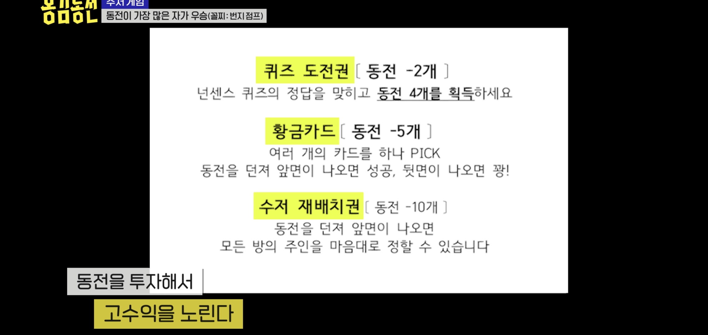 가진 동전을 투자하는 미션을 통해서 동전 획득
