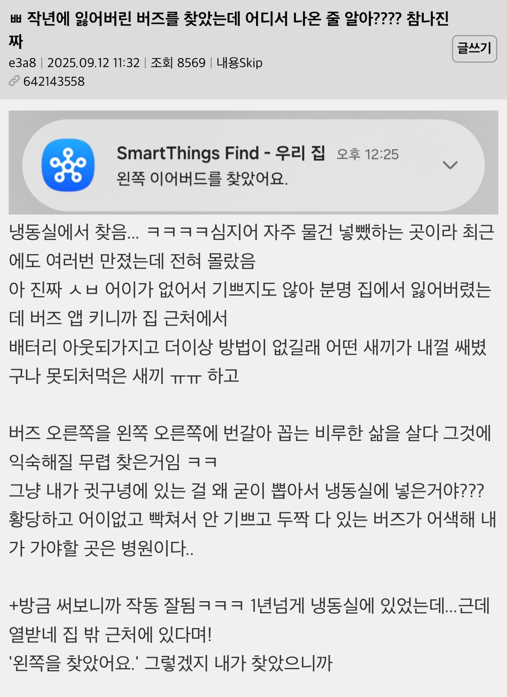 작성자힉킥코모리 작성시간 25.11.03 나도 싱크대서랍 수저칸 틈새에 케이스 통째로 넣어놓고 며칠 못찾은 적 있음^_ㅠ