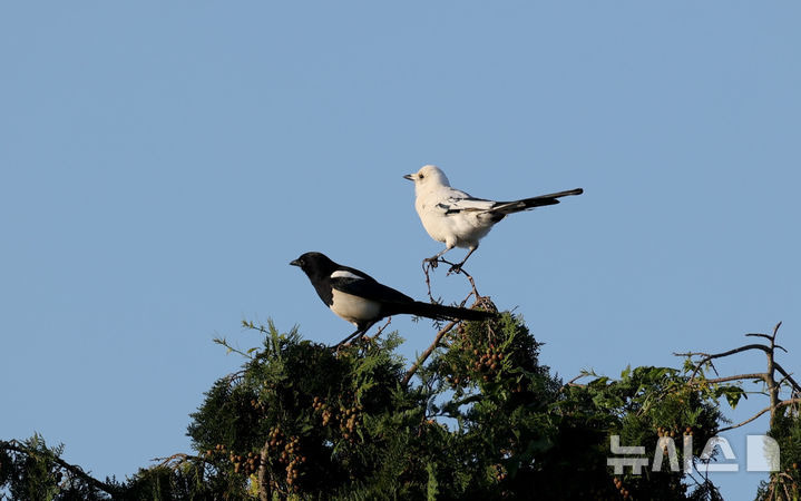 해당 까치는 털이 검은 일반 까치와 비교했을 때 확연한 차이를 보였다.