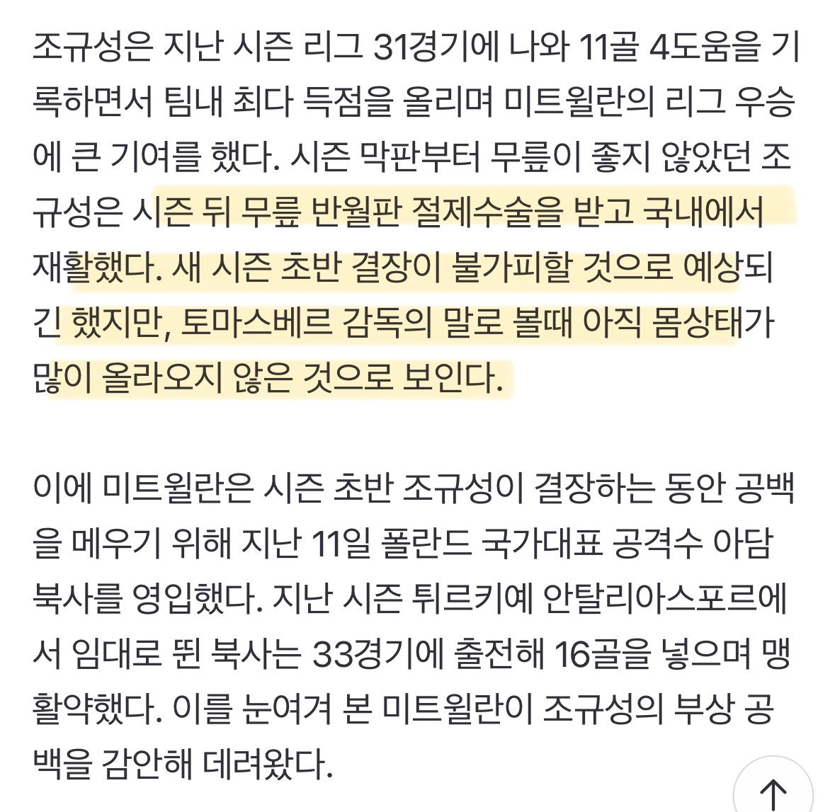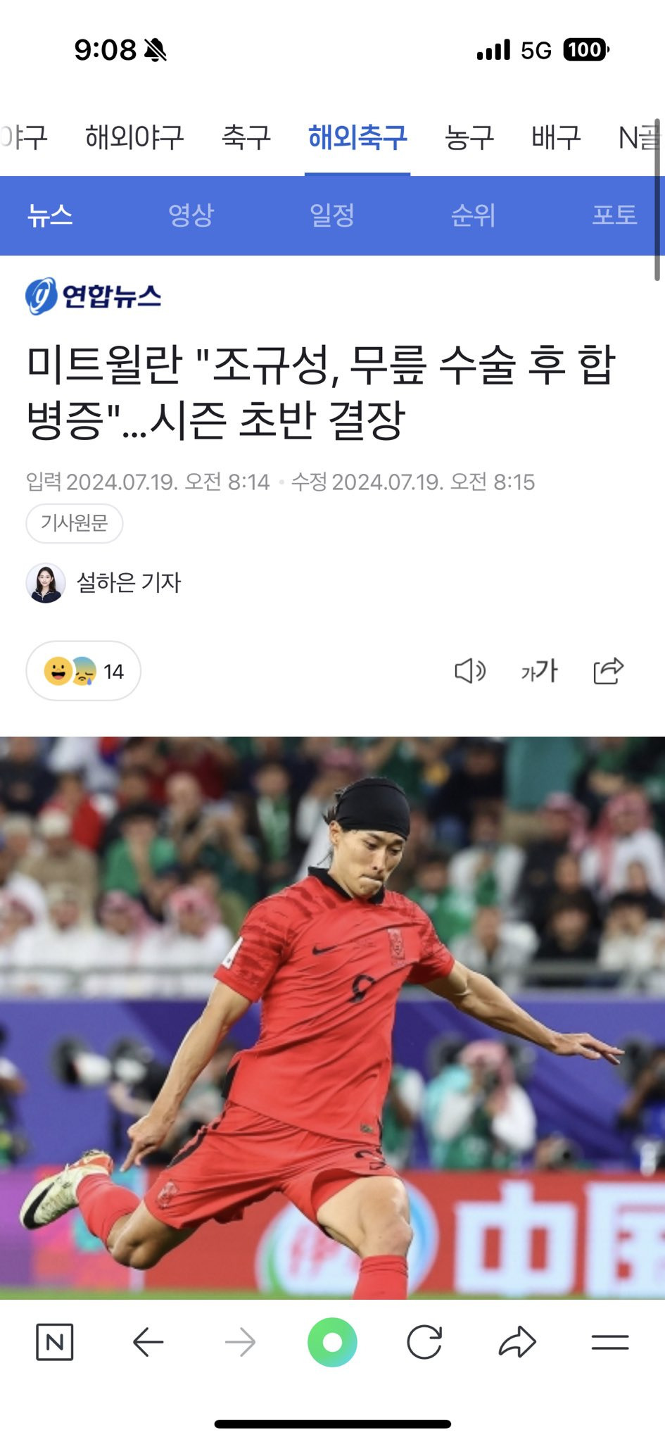 2022 월드컵 경기 후 한번도 못쉬고 시즌 휴식기에 귀국해서 무릎수술했었음