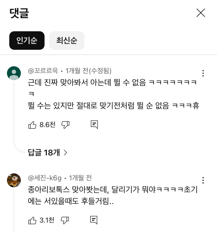 맞은 사람들 후기도 나옴