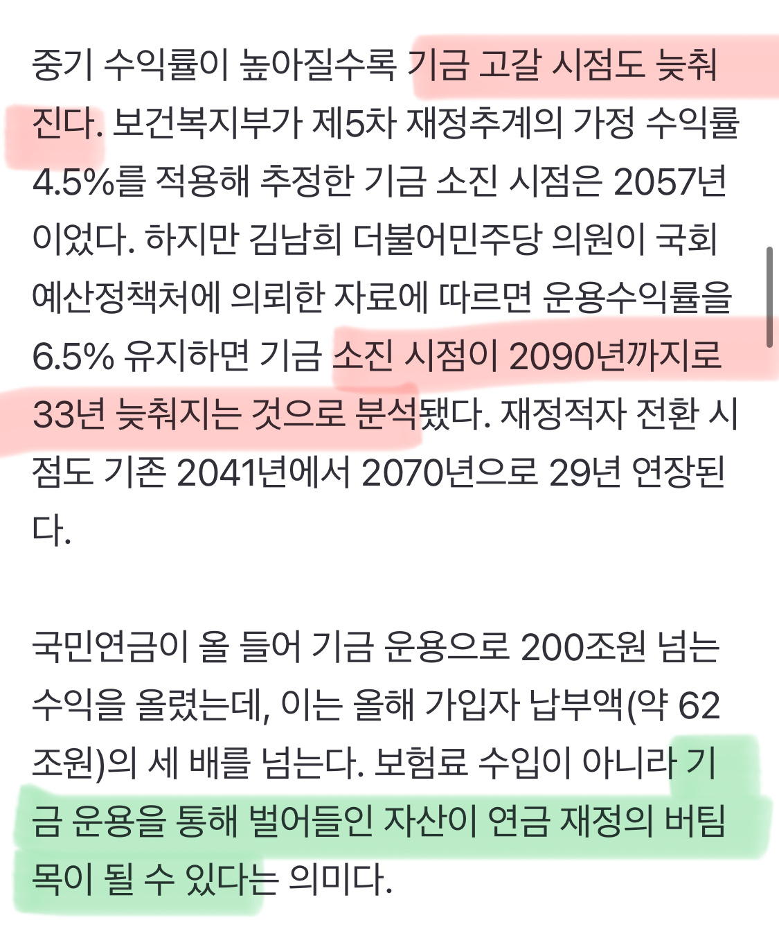 —> 연금고갈 시기 2090년까지로 늦춤