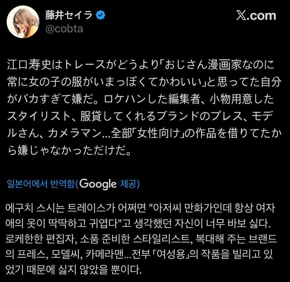 작성자깃털이불과양털 작성시간 25.11.03 사진에 참여한 여자 스태프들의 시선과 능력을 가져가서 쓴거기 때문에 여자들이 봐도 기분나쁘지 않았고 실제 여자같은 느낌이 있었고 매출이 나왔던거네.. 남자가 여자들 카피라이트를 무단으로 사용해서 돈과 명성을 얻은..