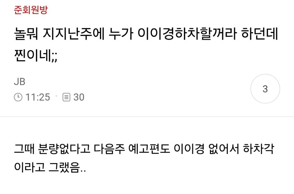 이번주부터 안 나옴
