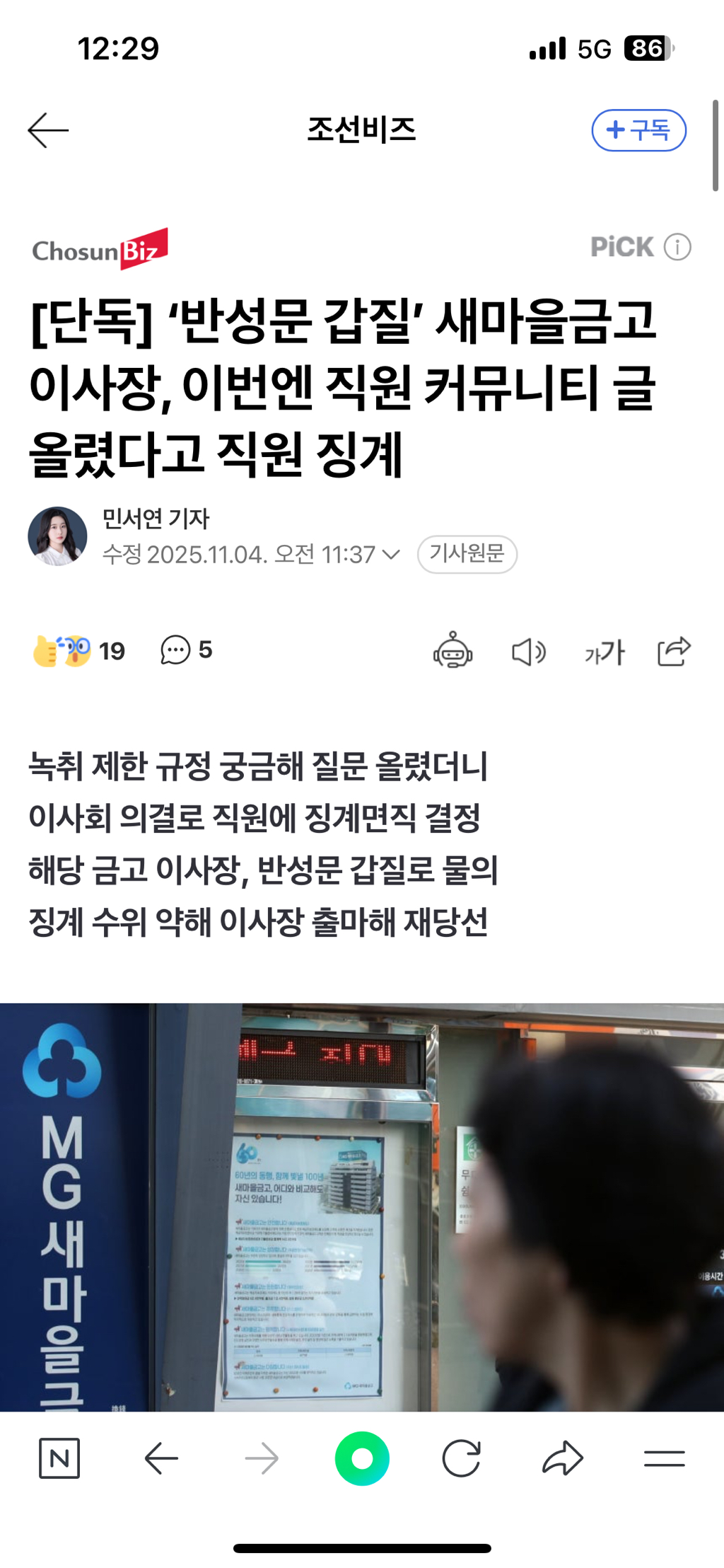 3. 올린 글은 금고 직원들 사이 논란이 됨