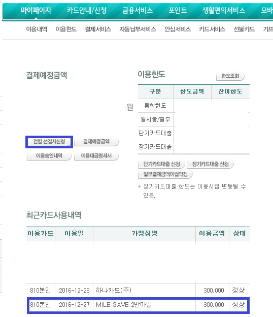 마일리지를 몰래 카드 결제금액으로 써버리는 등