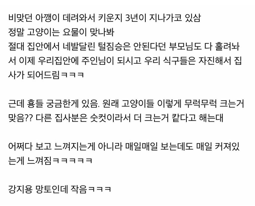 치즈냥 보통 수컷이 90프로래 아무래도 남자애라 덩치도 커지는데