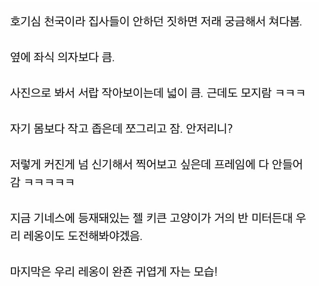울 애기는 치즈 여자애라 살 아무리 찌울려고 해도 잘안찌더라 덩치도 좀 작고 ㅜㅜ (중성화 완) 물론 냥바냥이겠죠