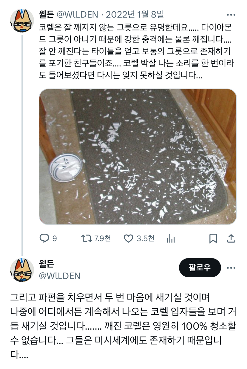 작성자햄쪽이 작성시간 25.11.05 코렐 깨지면 진짜 집 버려야함 코렐 이제 안씀