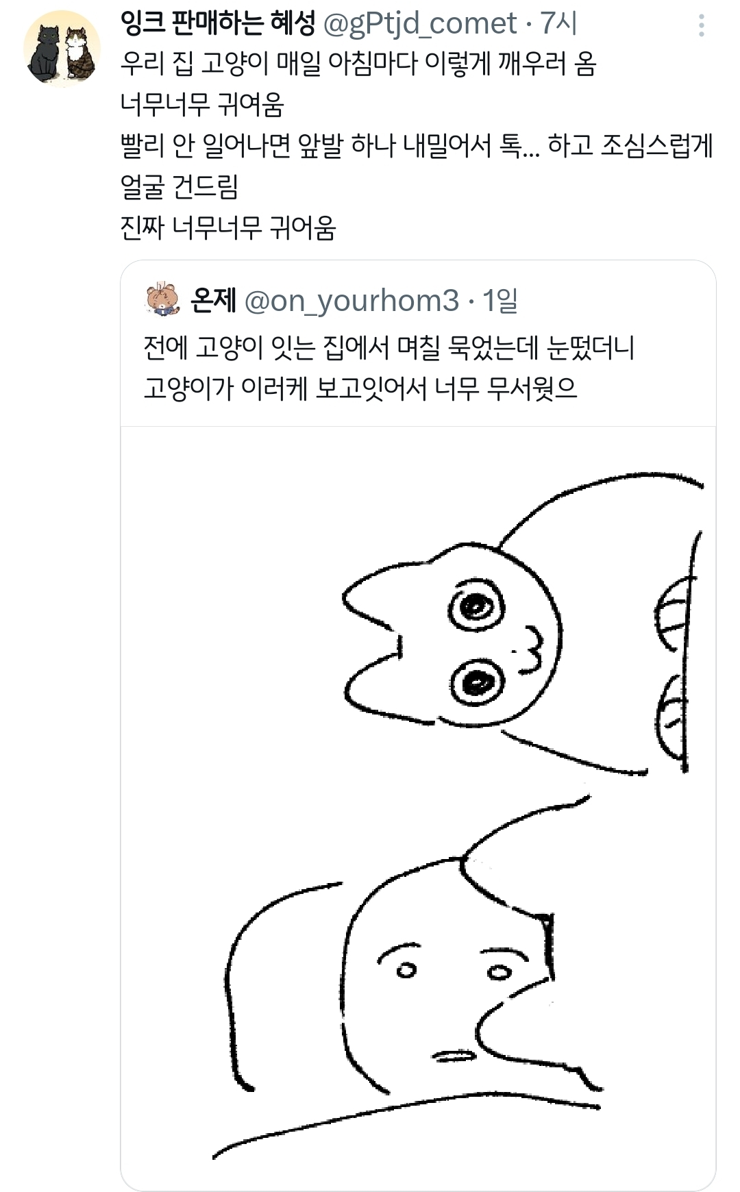 작성시간 25.11.05 왜 난 집사인데도 뷰럽지.. 울 고양이는 저런거 절대 안해줘 ㅠ 걍 내가 찾아가는 서비스임