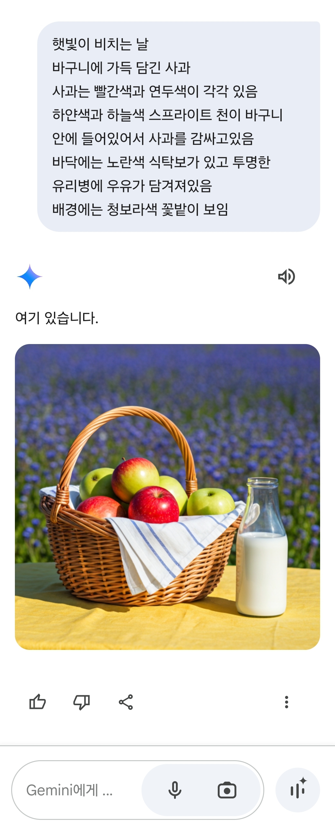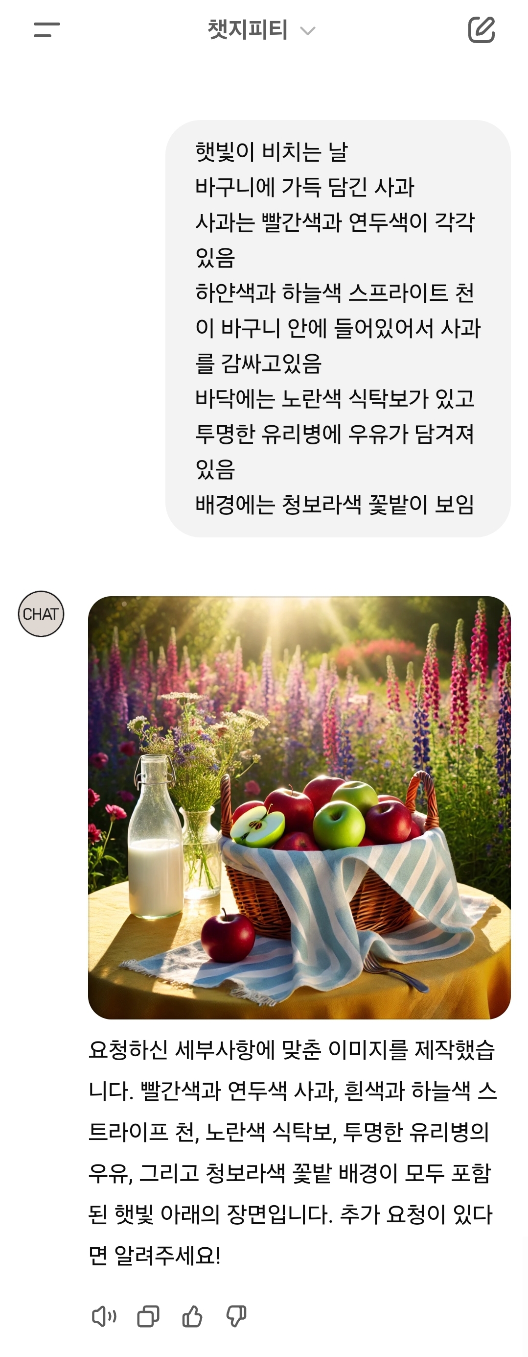 [스크랩] [흥미돋]같은 명령을 내렸을때 챗지피티vs제미나이 사진은 어떻게 다를까 작성자너너뉘기야|작성시간25.11.04|조회수29,820 목록 댓글 50 글자크기 작게가 글자크기 크게가 출처: 여성시대 안돼 하지마챗지피티제미나이내 취향은?개인적으로는 사진은 제미나이가 구글기반을 모아와서 그런지 자연스러운 느낌이고 취향임나만 그럴수도내가 소수의 취향일수도내가 보는눈이 없어서일수도그렇다면 사죄를...! 여시들의 취향은 어때?참고로 내 프사도 제미나이 작품 다음검색 스크랩 원문 : *여성시대* 차분한 20대들의 알흠다운 공간 현재 게시글 추가 기능 열기 북마크 공유하기 신고 센터로 신고 댓글 댓글 50 댓글쓰기 답글쓰기 댓글 리스트 작성자2찍은죽어라 | 작성시간 25.11.05 지피티꺼는 다 비슷하뇌 작성자아무튼 규탄한다 이것저것 보장하라 | 작성시간 25.11.05 난 레모네이드로 바꿔봤엉 이건 지피티 이미지 확대 답댓글 작성자아무튼 규탄한다 이것저것 보장하라 | 작성시간 25.11.05 요게 재미나이 이미지 확대 답댓글 작성자아무튼 규탄한다 이것저것 보장하라 | 작성시간 25.11.05 요게 퍼플렉시티 이미지 확대 작성자대체휴무 | 작성시간 25.11.05 이미지 확대 댓글 전체보기