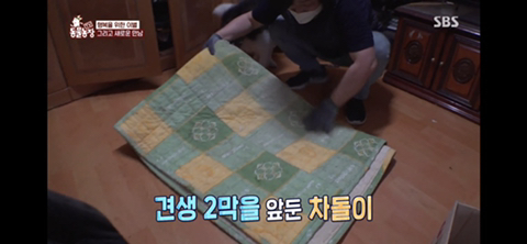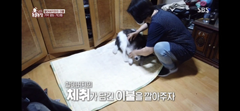 할아버지의 체취가 담긴 이불을 깔아주자 엄청 좋아해..ㅠㅠㅠ