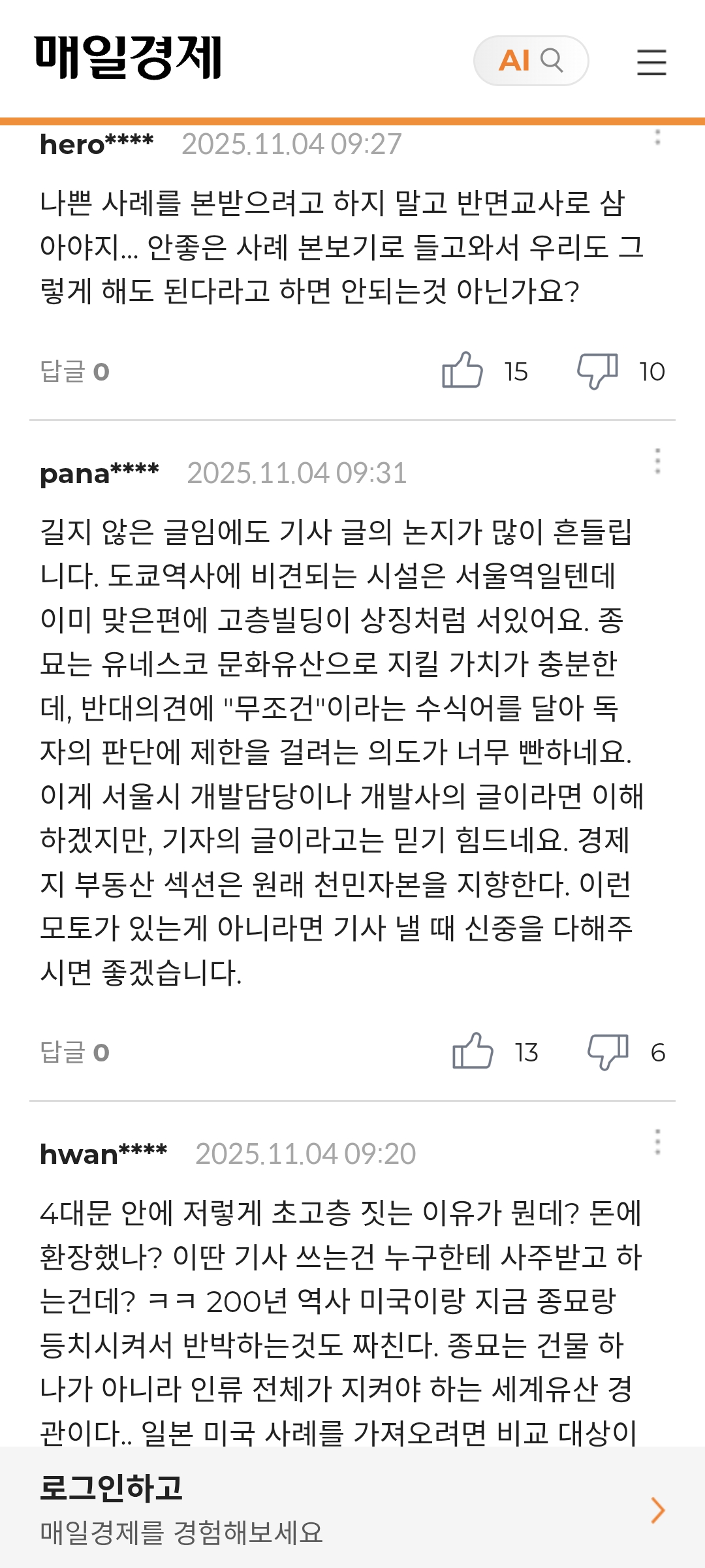 [여시뉴스데스크]일본은 고궁 앞에 초고층빌딩 세웠는데…한국 유산청은 “무조건 안돼” 작성자힘내자힘내자힘|작성시간25.11.05|조회수55,242 목록 댓글 237 글자크기 작게가 글자크기 크게가 출처: https://m.mk.co.kr/news/realestate/11458865그래서 도쿄 황궁이 유네스코 문화유산이냐????진짜 단어 선택부터 비교 대상까지 싹 다 ㅂㄹ 다음검색 현재 게시글 추가 기능 열기 북마크 공유하기 신고 센터로 신고 댓글 댓글 237 댓글쓰기 답글쓰기 댓글 리스트 작성자쿠거타운 | 작성시간 25.11.06 아 쫌 작성자peste | 작성시간 25.11.06 안되지 ㅅㅂ 작성자rosalia.vt | 작성시간 25.11.07 닥쳐 안돼 작성자하이그레그레 | 작성시간 25.11.07 안돼 븅신아 머라는 ㅋㅋ거임 작성자박돈경(49세,남) | 작성시간 25.11.08 근본 없는 나라들이랑 우리가 같니? 미친것 댓글 전체보기