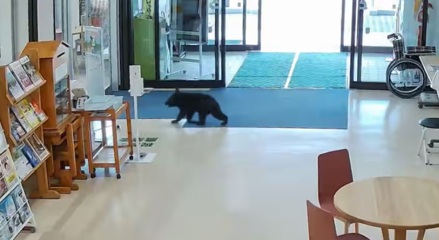 새끼 곰은 길게 머물지 않고 약 20초 뒤 청사 밖으로 빠져나갔습니다.