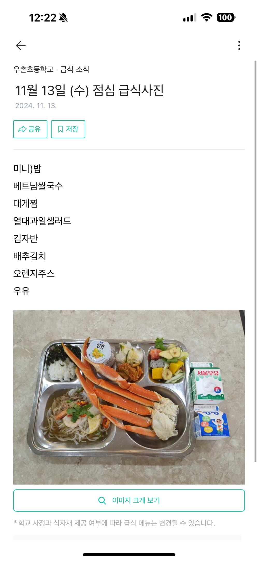 [흥미돋]급식으로 유명한 초등학교.jpg 작성자꿈돌이라면|작성시간25.11.05|조회수50,324 목록 댓글 30 글자크기 작게가 글자크기 크게가 출처: https://www.threads.com/@yunossi/post/DQrKwHwkjSS?xmt=AQF0gkXjOiuC8x650B_0ZZeD-N6X_h8how6ExwtwGRGk4SAers5WQ7tntf7wCWQ-OO37GosE&slof=1사립초인데 급식은 똑같이 무상급식이라함급식으로 돌아가고파 ⋯ 다음검색 현재 게시글 추가 기능 열기 북마크 공유하기 신고 센터로 신고 댓글 댓글 30 댓글쓰기 답글쓰기 댓글 리스트 작성자BUNNY | 작성시간 25.11.06 진짜 노고가 많으시겠다... 작성자더손놈 | 작성시간 25.11.06 와... 대박이다 근데 대게를 손질해서 먹을 수가 있어? 나이가 예민할 때라 손으로 막 잡고 뜯어 먹을 수가 있나? 작성자촠코촠촠코 | 작성시간 25.11.06 맛있어 보이네 근데 조리원 선생님들 힘드시겠다 작성자쪼코튀소 | 작성시간 25.11.06 나 초등핟생시켜줘요... 작성자후루룩꾹꾹국수 | 작성시간 25.11.11 여기 유치원도 유명해 ㅋㅋㅋ 비싸기로.. 댓글 전체보기