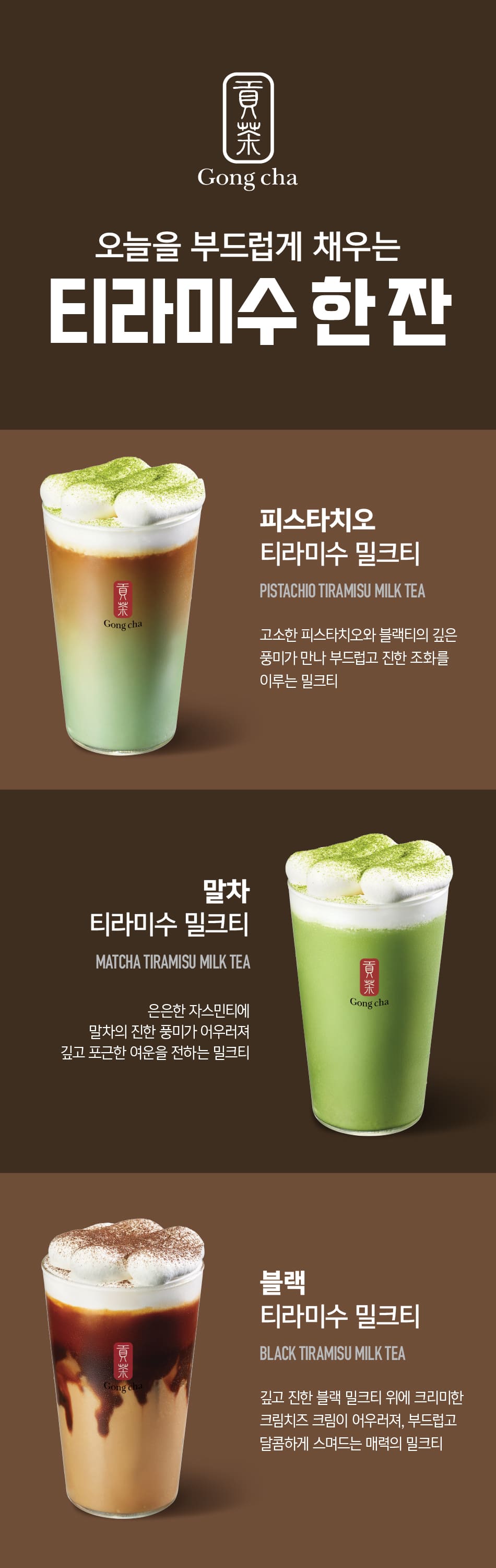 [흥미돋]공차 티라미수 밀크티 3종 출시 작성자김 재영|작성시간25.11.06|조회수9,876 목록 댓글 10 글자크기 작게가 글자크기 크게가 출처: https://www.gong-cha.co.kr/brand/menu/new_menu?scroll=y공차 www.gong-cha.co.kr피스타치오 티라미수 밀크티말차 티라미수 밀크티블랙 티라미수 밀크티 다음검색 현재 게시글 추가 기능 열기 북마크 공유하기 신고 센터로 신고 댓글 댓글 10 댓글쓰기 답글쓰기 댓글 리스트 작성자새비디 | 작성시간 25.11.06 블글라 말글라 바로 따라했네ㅋㅋㅋ 작성자히터틓어둬 | 작성시간 25.11.06 궁금한데 당류듀랏나ㅠ 작성자큼흠흠 | 작성시간 25.11.06 맛있겠다 작성자wndrnrdkdnt | 작성시간 25.11.06 당…미쳤다 하루치네 작성자바질토마토루꼴라 | 작성시간 25.11.06 와 피스타치오 맛있을 것 같아 댓글 전체보기