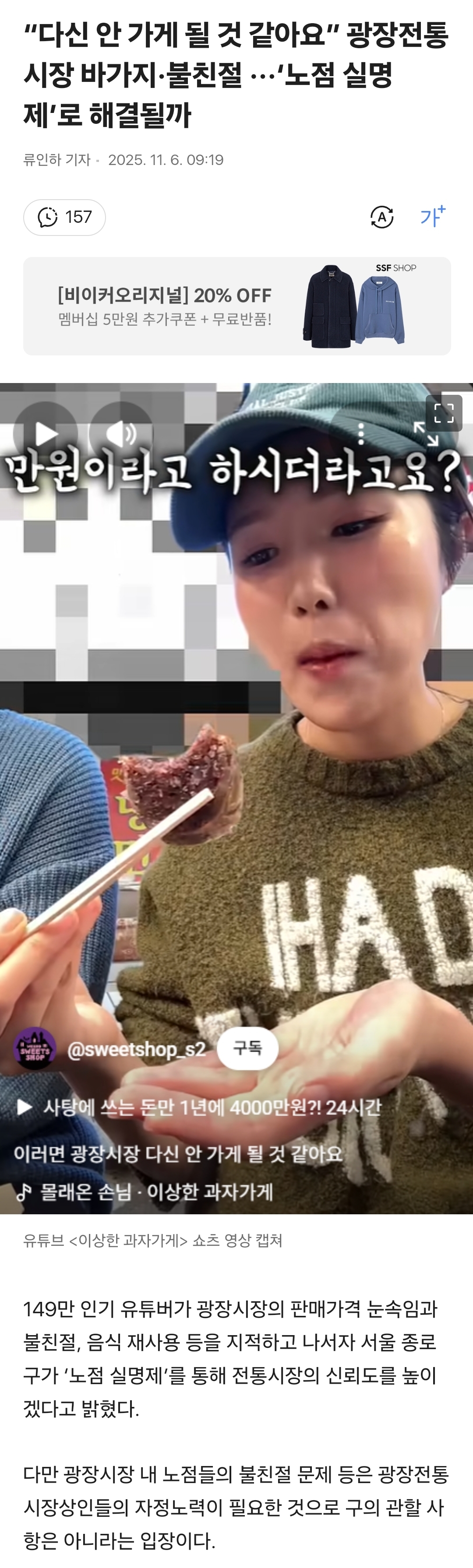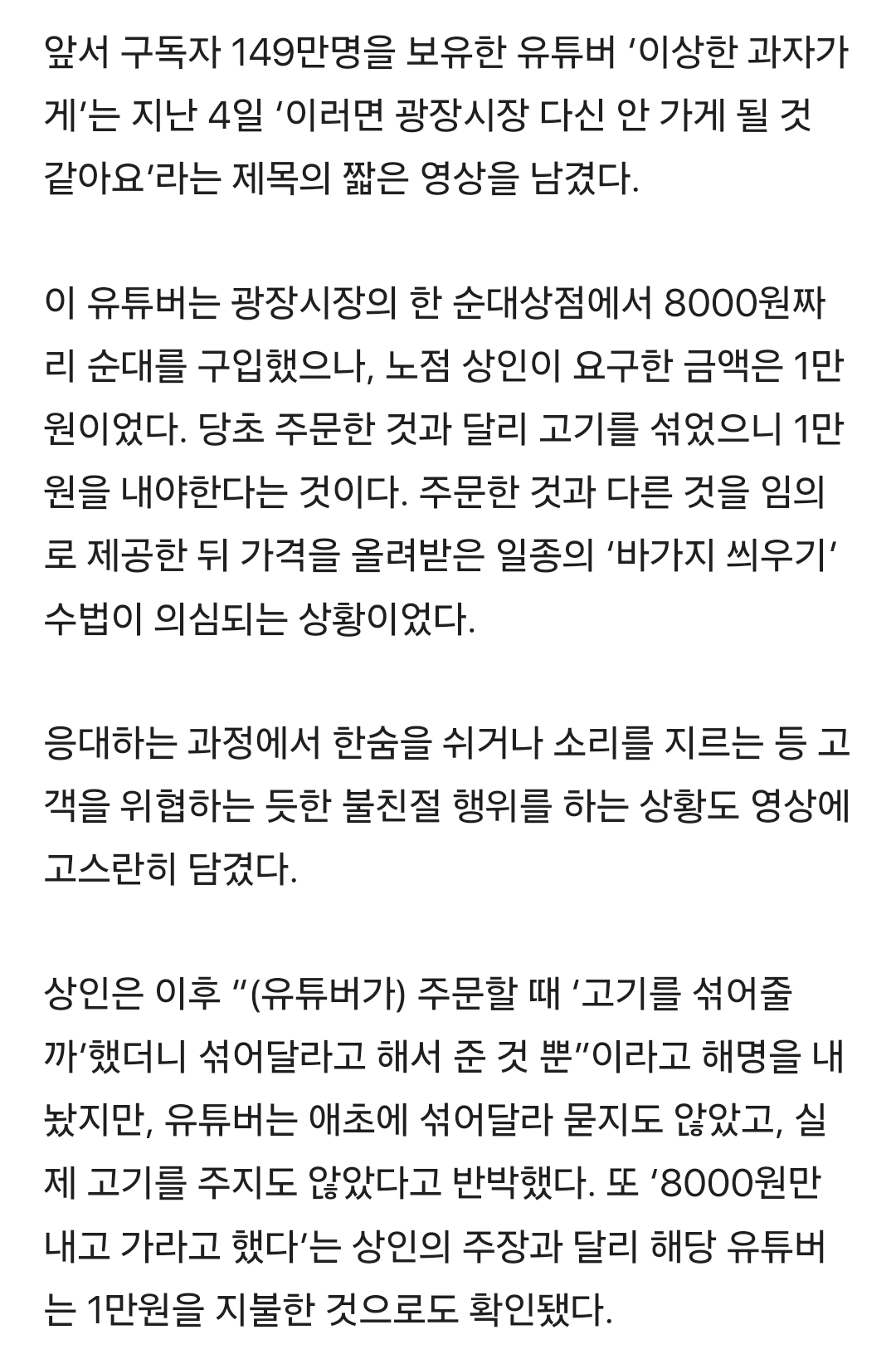 작성자홈런볼런홈 작성시간 25.11.06 멋대로 바가지 씌우는 영상이 광장시장 검색하면 우수수 나오던데 뻔뻔하네