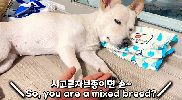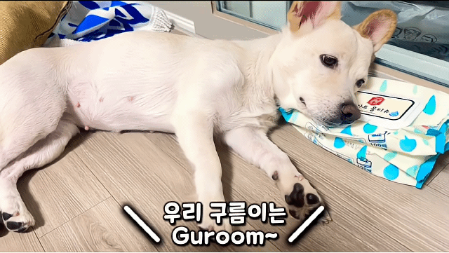 세상 귀찮은듯 물티슈 베고 누워서 주인말 다 알아들음ㅋㅋㅋㅋㅋㅋ