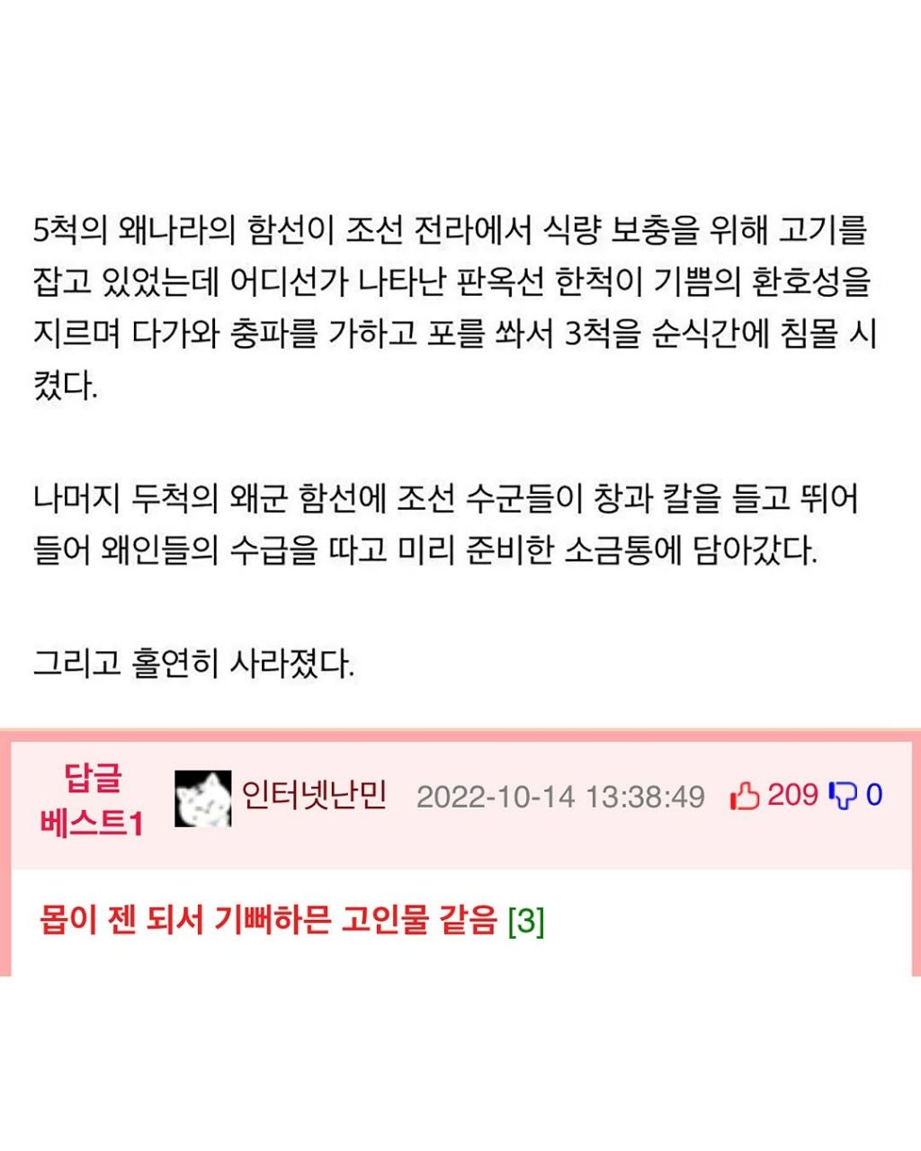 [스크랩] [흥미돋]광기의 조선 수군 작성자말 많은 여시|작성시간25.11.06|조회수4,289 목록 댓글 3 글자크기 작게가 글자크기 크게가 이미지 출처: 인스타그램 다음검색 스크랩 원문 : 이종격투기 현재 게시글 추가 기능 열기 북마크 공유하기 신고 센터로 신고 댓글 댓글 3 댓글쓰기 답글쓰기 댓글 리스트 작성자뽀리신 | 작성시간 25.11.06 개머시써 작성자말미잘 | 작성시간 25.11.06 작성자한글영문숫자기호만 입력해주세요 | 작성시간 25.11.06 왜젓갈 댓글 전체보기
