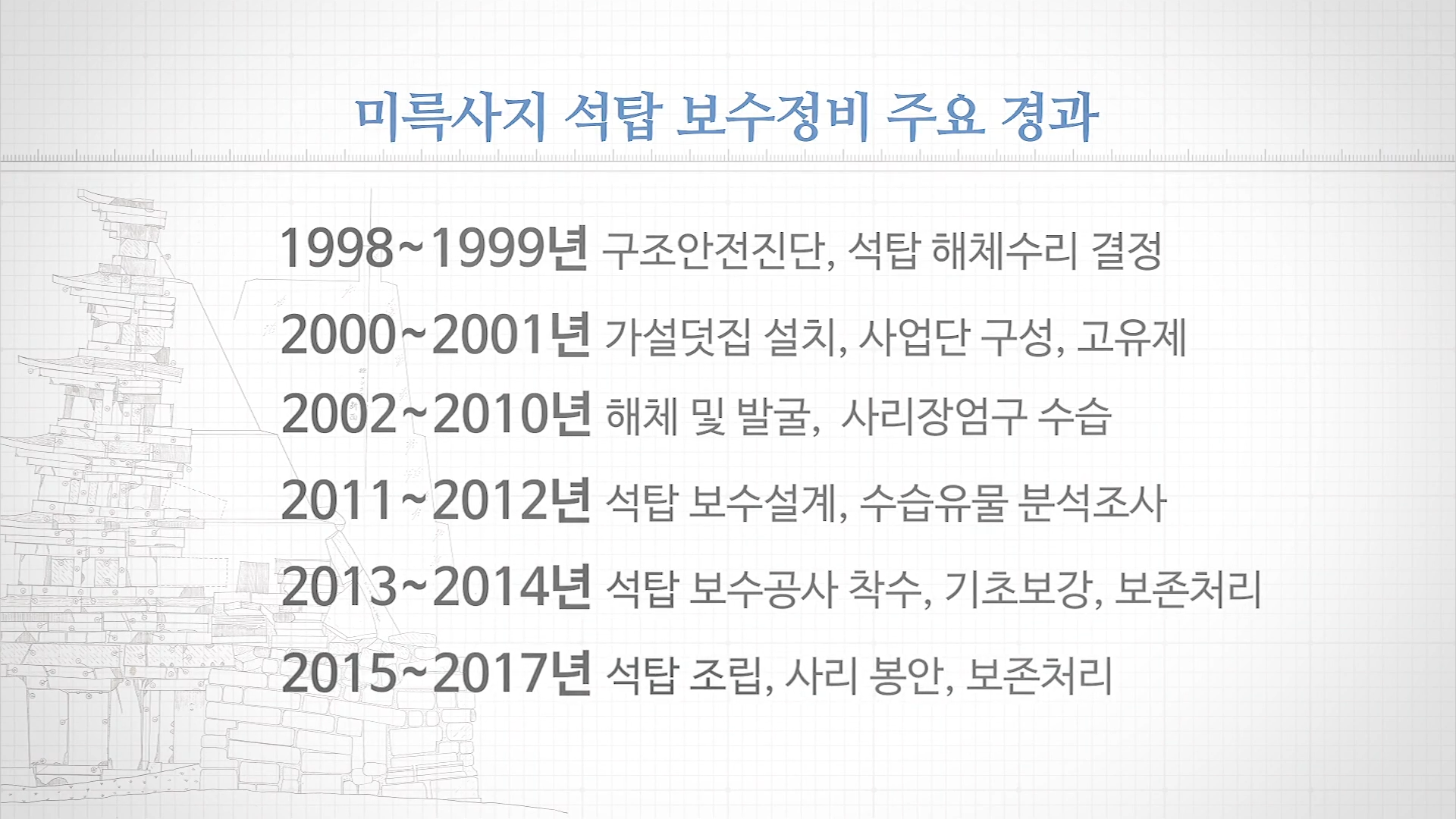 이 석탑을 수리하는 동안 온갖 기술이 다 동원됨