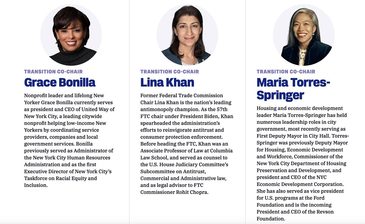 뉴욕 시장 인수위 간부가 모두 전원! 여성임