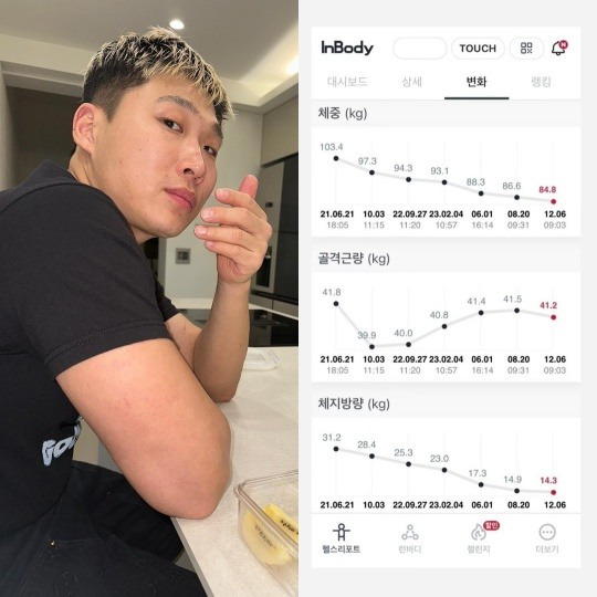 그래프 보면 알겠지만 체지방량 엄청 빠짐