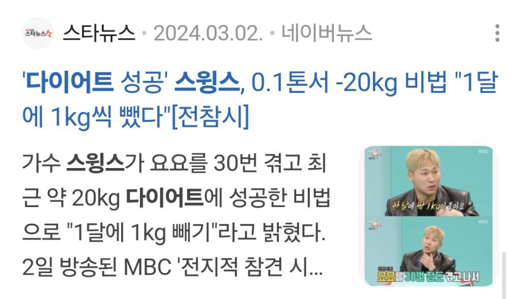 요요 극복했다고 인터뷰 함