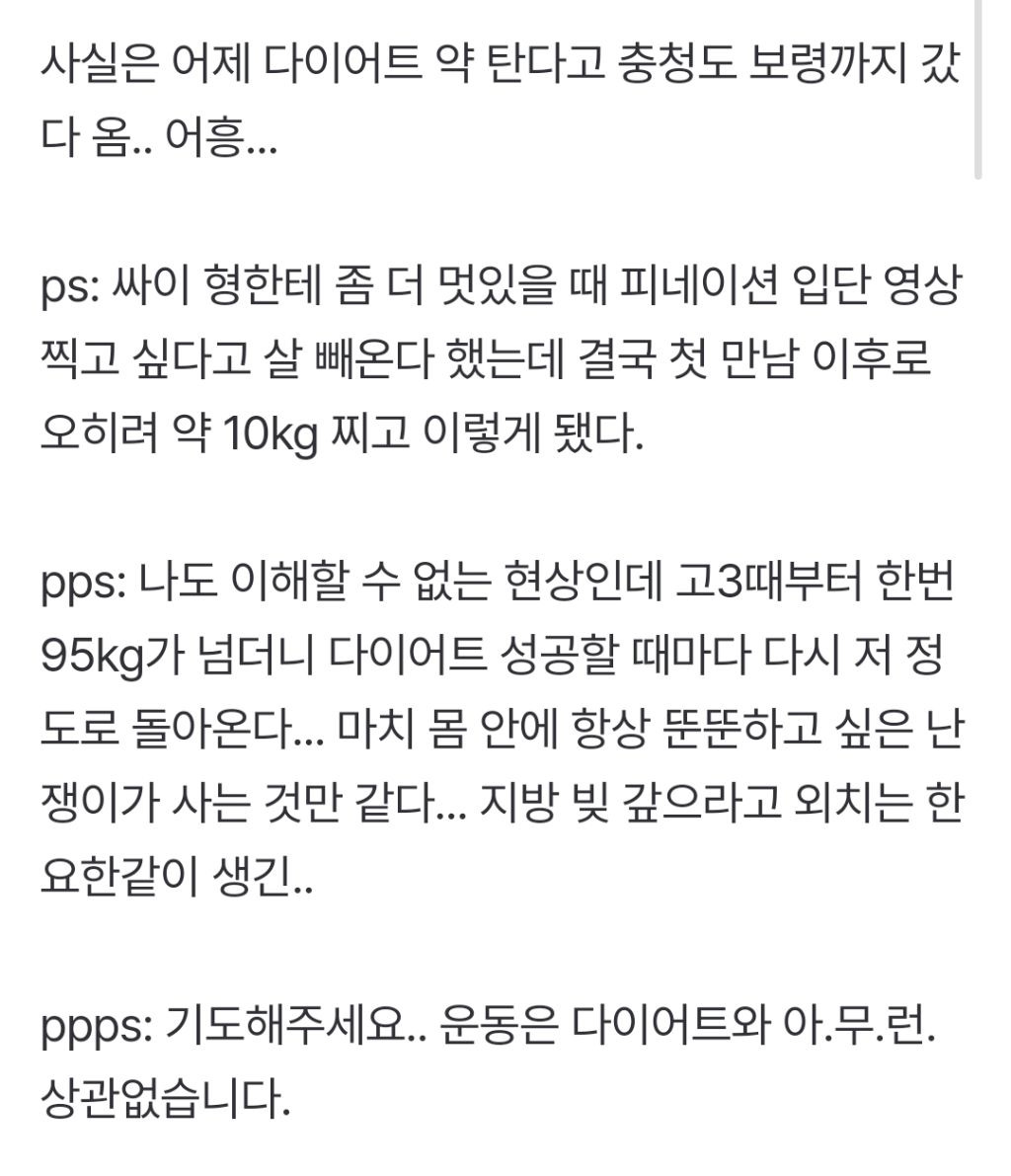 다이어트 성공 할때마다 계속 95~100kg로 돌아옴