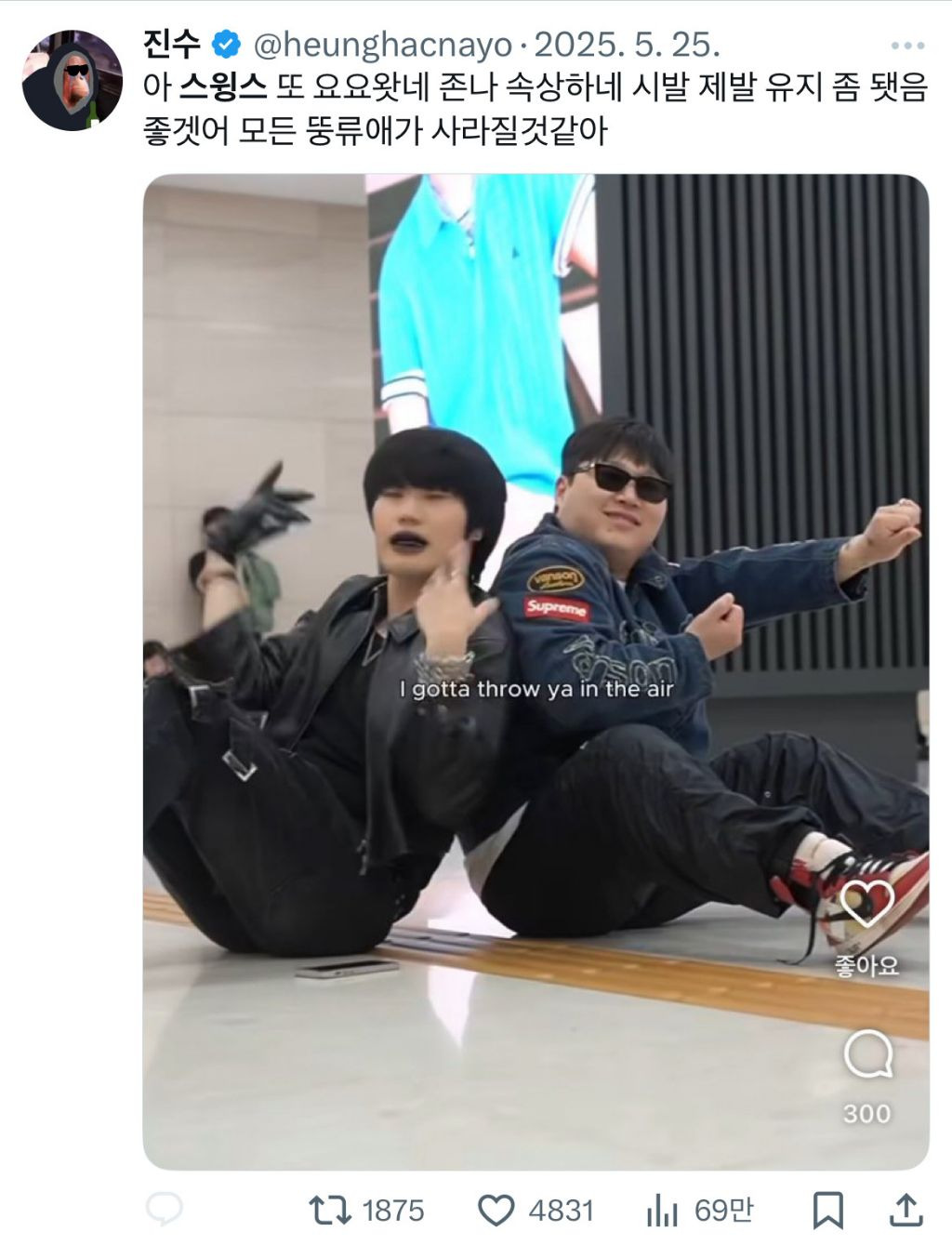 스윙스라 놀리려고 들어왔다가