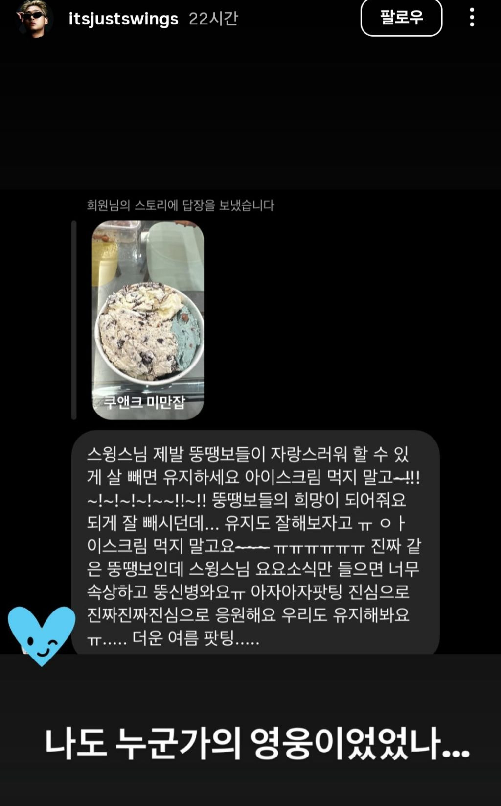 몸안에 뚱뚱하고싶은 난쟁이가 사는것같다는 멘트가 다이어터들의 심경을 울림