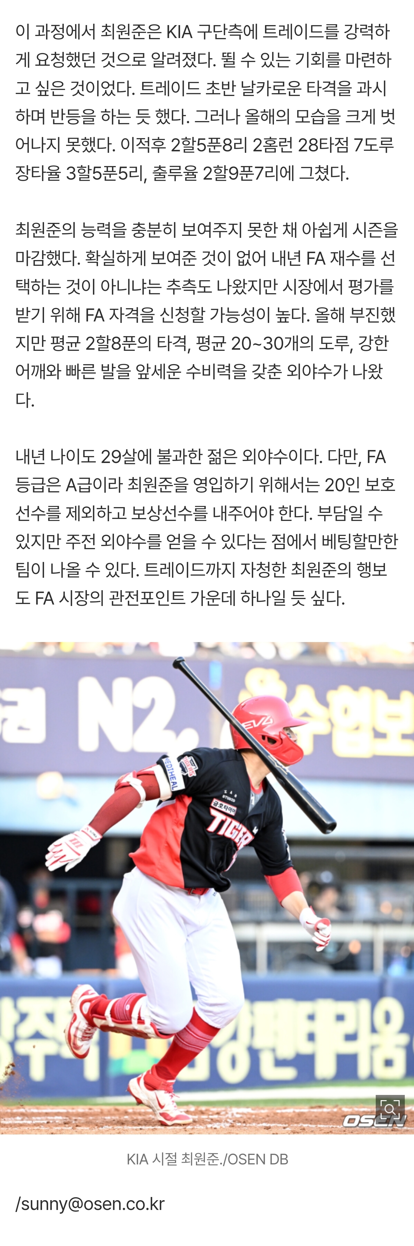 [여시뉴스데스크][프로야구] FA 가치 높이려 트레이드 자청했으나 타격 불발...꽤 쓸만한 28살 외야수, 시장에서 어떤 평가받을까