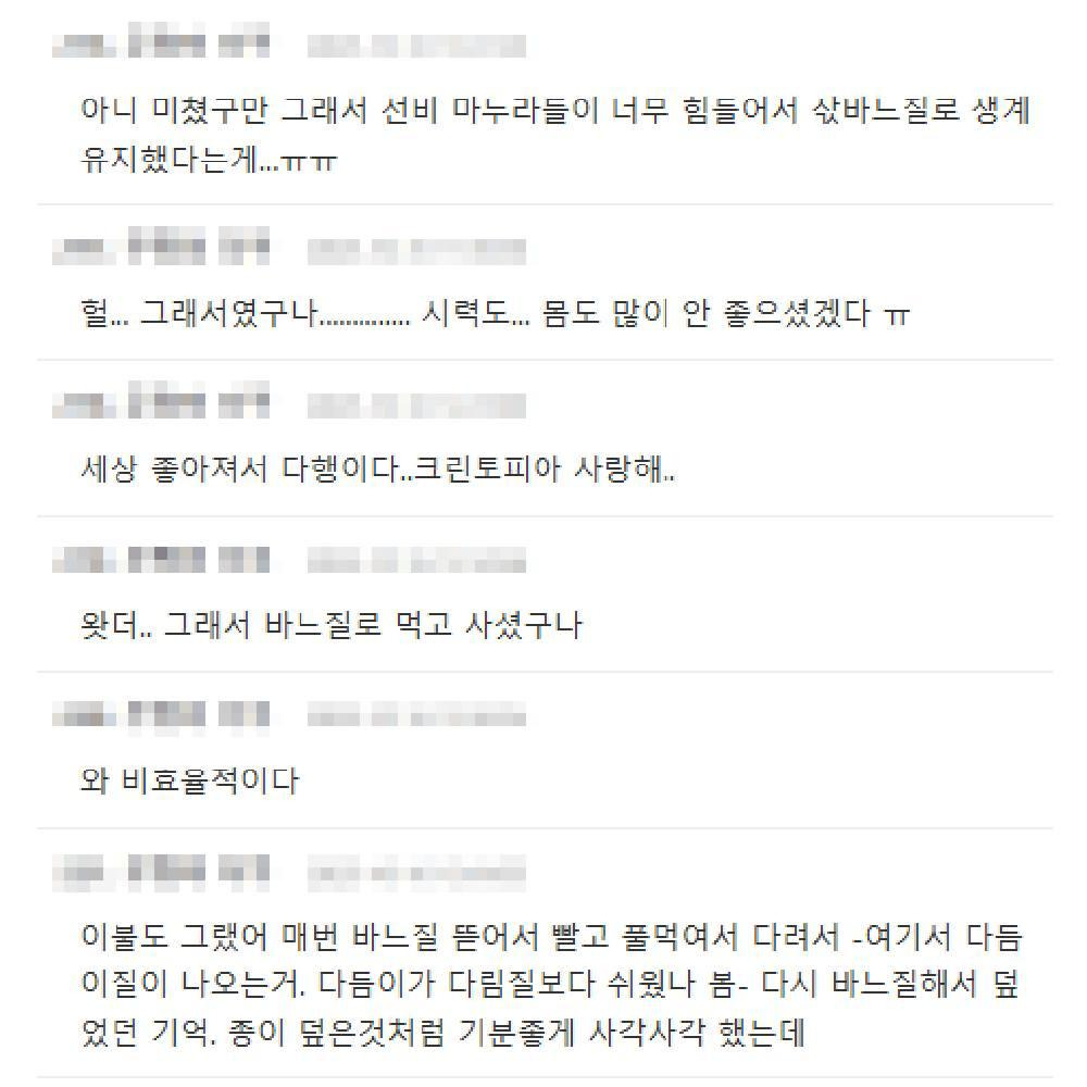[스크랩] [흥미돋]상상만 해도 토 쏠리는 옛날 한복 빨래법 ㄷㄷ 작성자왕펭귄악개|작성시간25.11.07|조회수28,400 목록 댓글 26 글자크기 작게가 글자크기 크게가 다음검색 스크랩 원문 : 쭉빵카페 현재 게시글 추가 기능 열기 북마크 공유하기 신고 센터로 신고 댓글 댓글 26 댓글쓰기 답글쓰기 댓글 리스트 작성자이것뭐에요?? | 작성시간 25.11.07 요즘 한복도 세탁기 돌리면 되나? 작성자빙글삥글뱅글뺑글 | 작성시간 25.11.07 그래서 백의민족이었던건가 희면 걍 빨아도 되니까 작성자골든 | 작성시간 25.11.07 헐 작성자오늘도 누워있음 | 작성시간 25.11.08 헐.. 그래서 저렇게 천만 널려있었던거구나 작성자더피서씨 | 작성시간 25.11.08 미친... 힘드셨겠다 댓글 전체보기