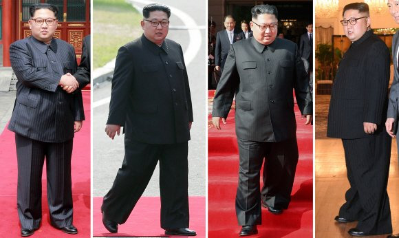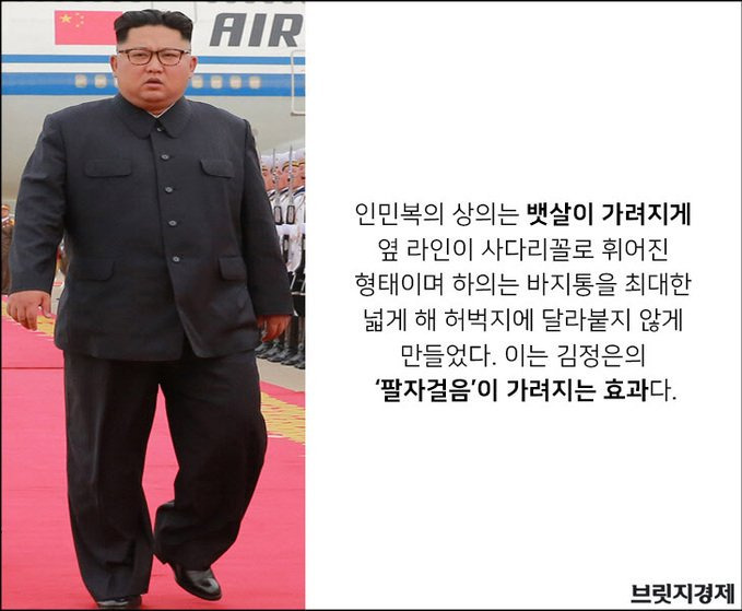 김정은도 마찬가지인데 검정색 줄무늬 인민복을 즐겨 입으며