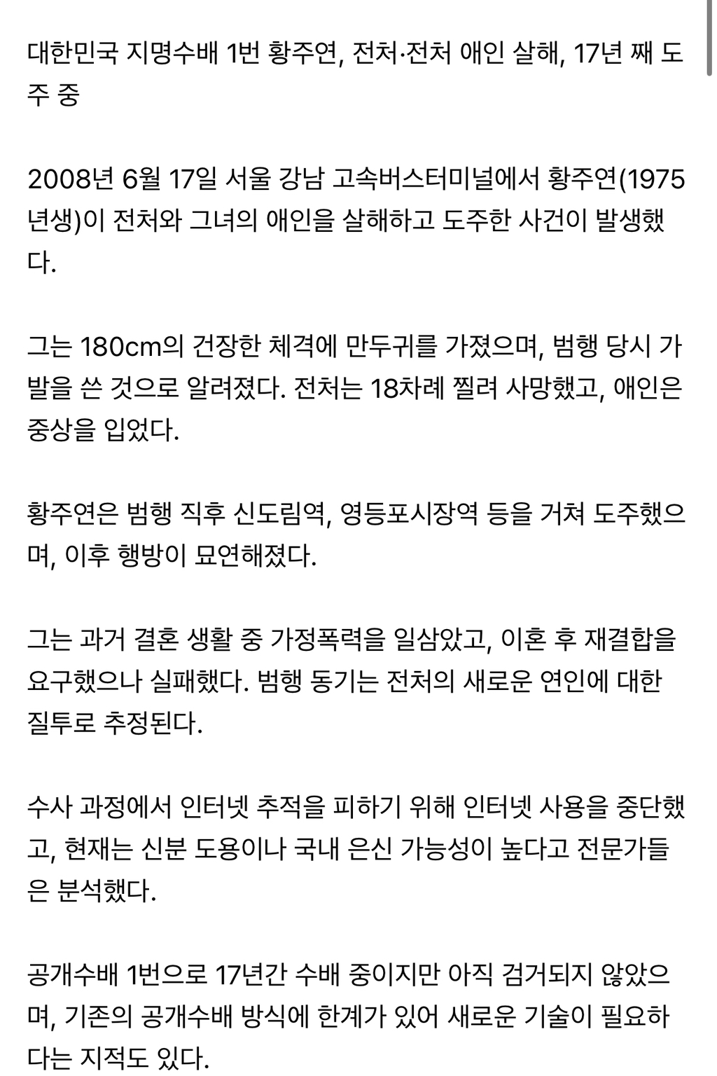 2008년이면 엄청 옛날도 아니고 서울 한복판에서 사람 죽인건데 안잡히는게 조올라 신기
