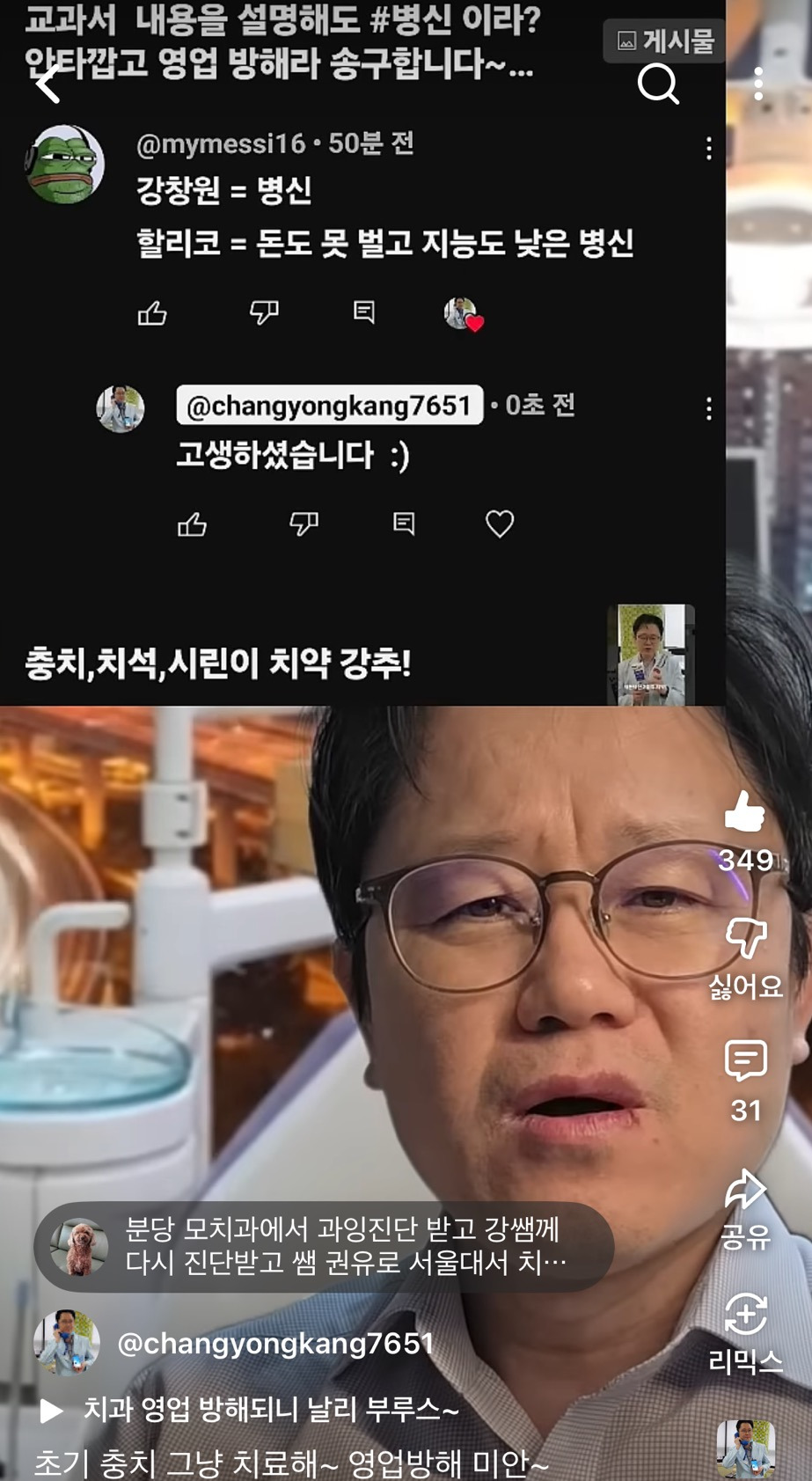 작성자springSummer 작성시간 25.11.09 진짜 치과도 여러군데 가봐야함