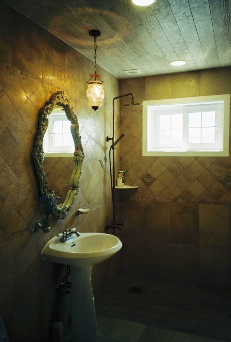 2층 욕실인데 타일에 너무 욕심을 냈던...