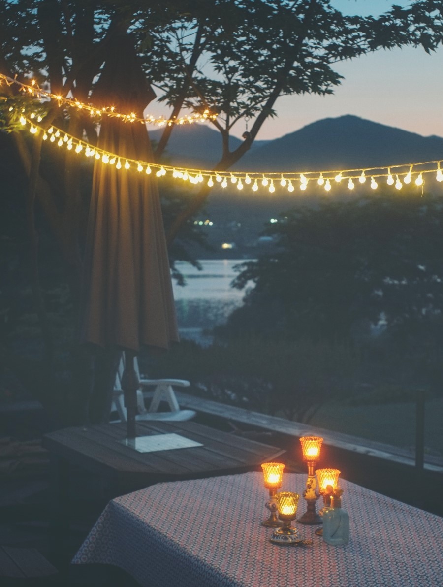 석양이 멋진날에는 조명설치하고 카페분위기도...