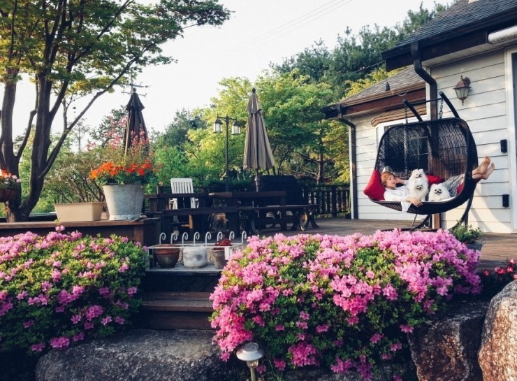 어떤때는 밥먹을때 빼고는 하루종일 정원과 데크에서 지내는 경우도 있구요